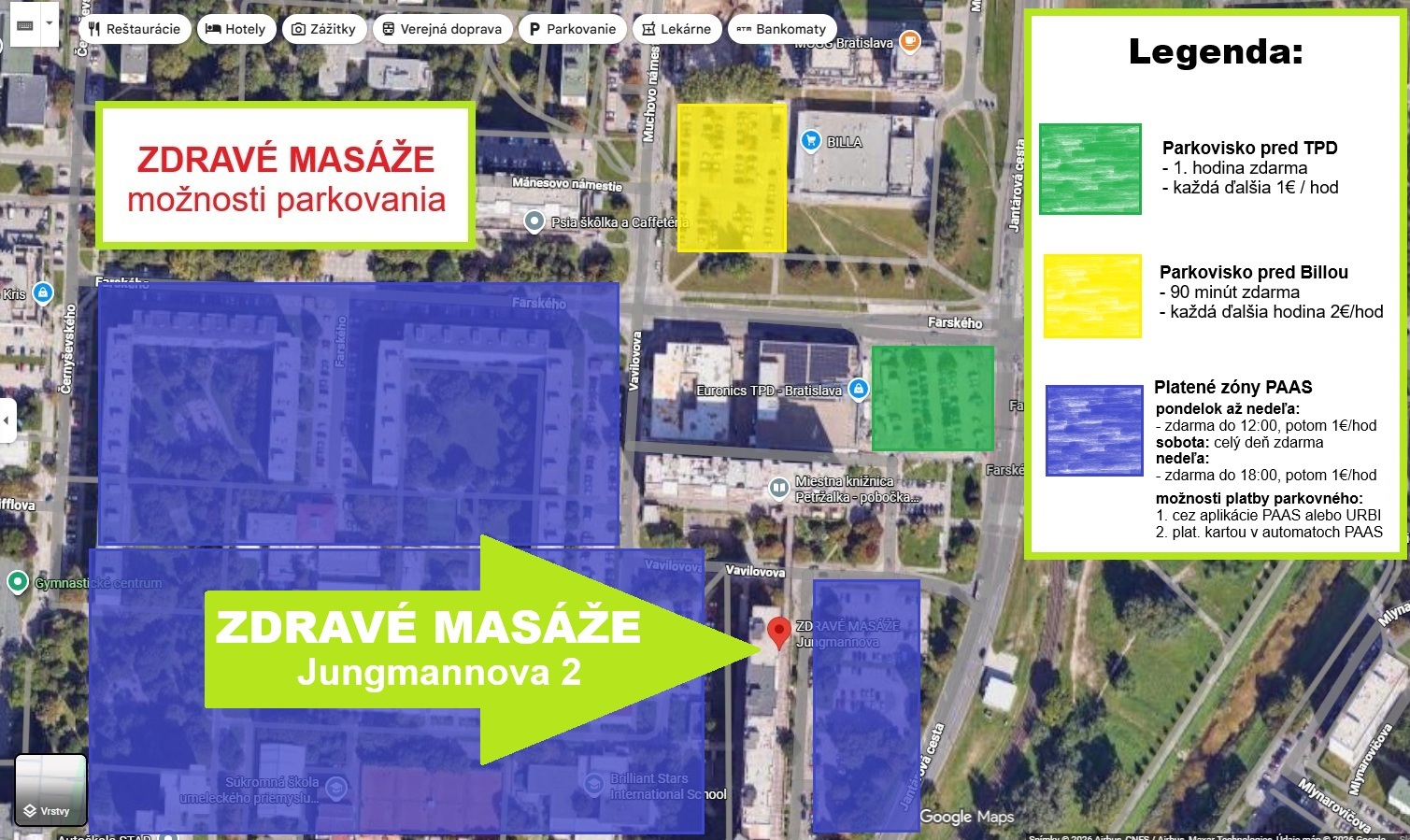 Nové od 1.4.2026: Ak je rampa na parkovisku zatvorená, volajte nás prosím na tel. 0911 257 196, rampu vám otvoríme. Ak nedvíhame, masírujeme, skúste o pár minút neskôr.