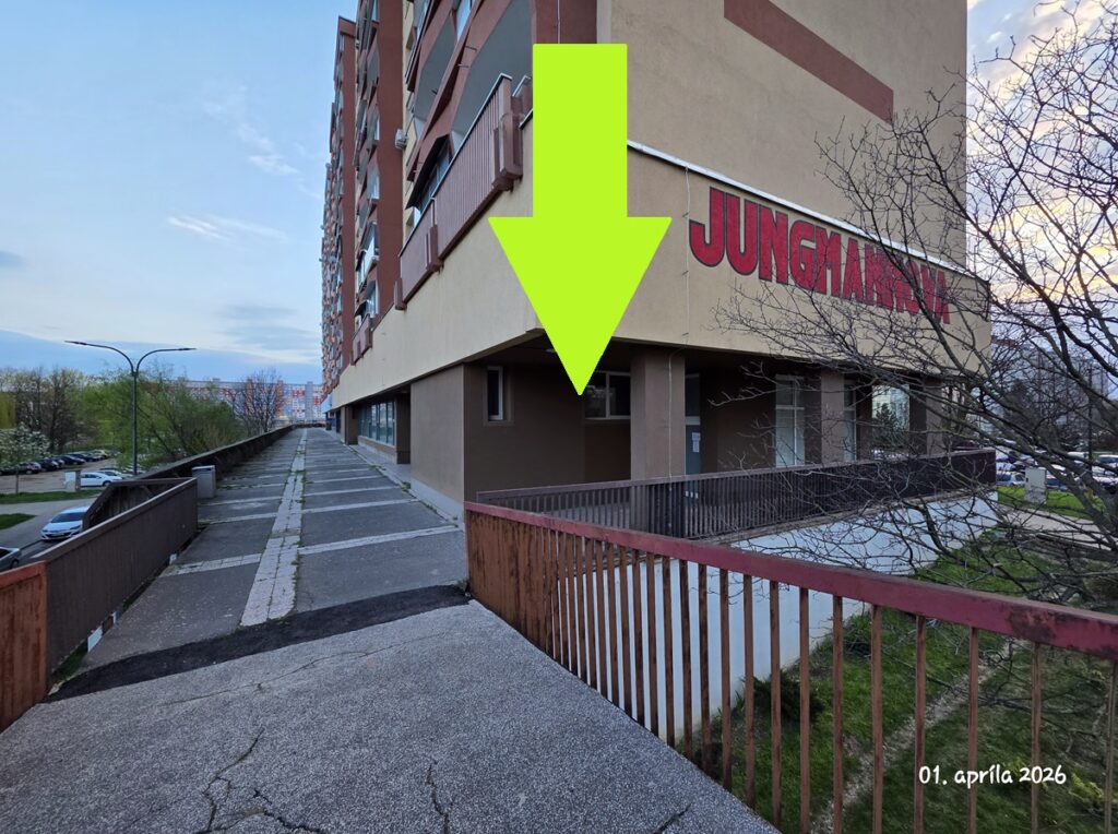 Vstup do našej prevádzky sa nachádza na terase bytového domu. Dostanete sa k nám po nadchode alebo chodníku zo bočnej strany budovy. Na dverách nájdete označenie prevádzky s našom logom a zvonček na dverách. Na uľahčenie orientácie prosím využite Google mapy, kde nájdete podrobný foto návod ako nás nájsť.